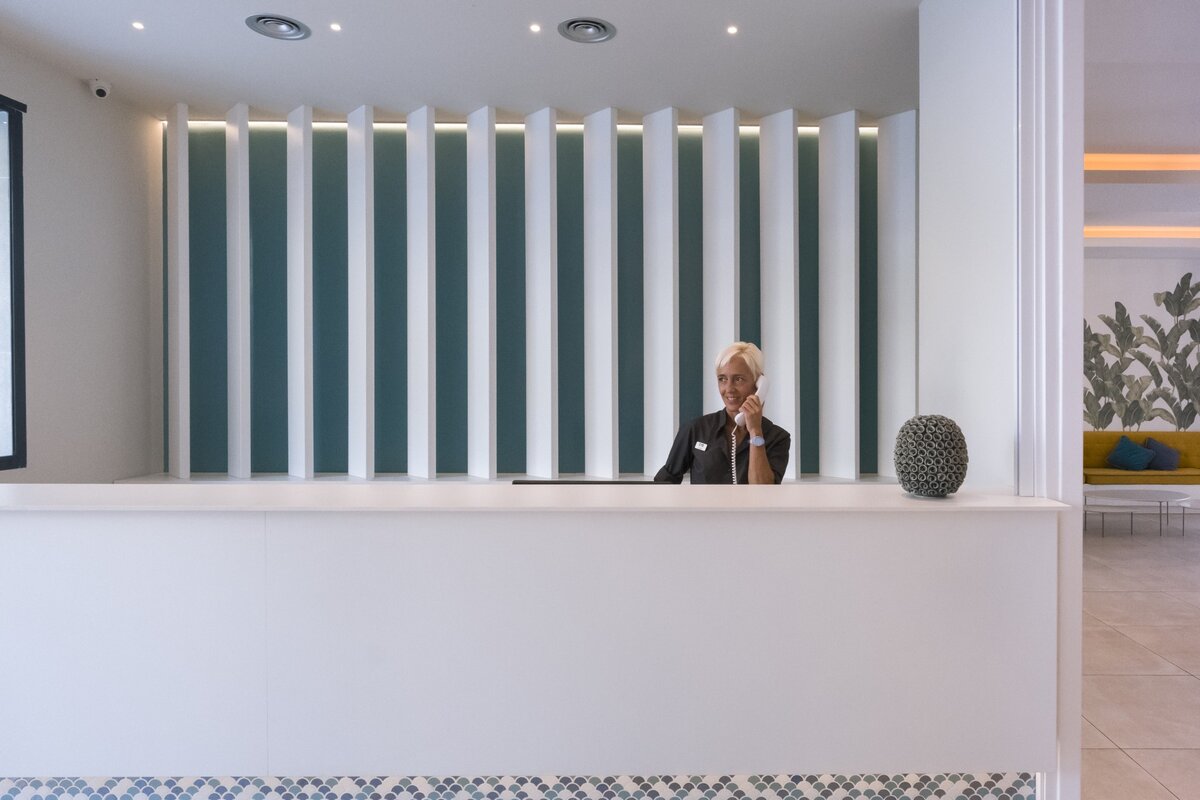 Link to Photo10, Une femme debout derrière un comptoir d’accueil