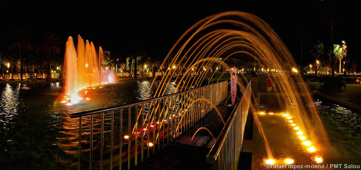 Link to Photo28, Une femme debout sur un pont avec des fontaines à eau en arrière-plan